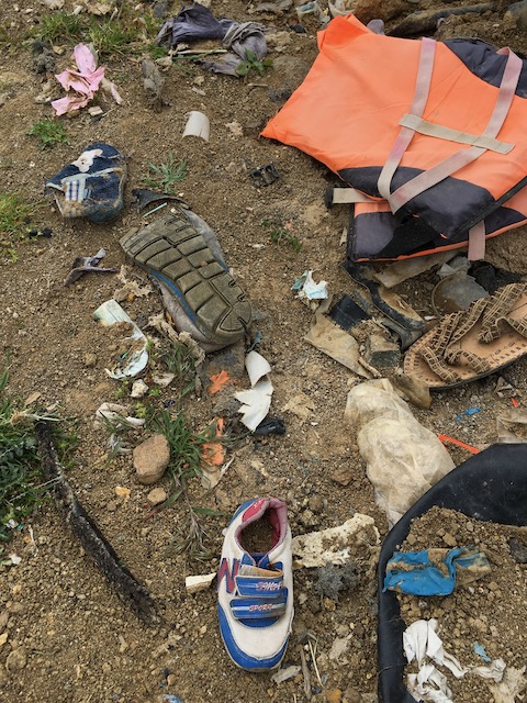 De route erheen was prachtig, maar wat een plek: een bergtop die als vuilnisbelt wordt gebruikt waar hele boten liggen die in beslag zijn genomen en nog veel life jackets te zien zijn, met tassen, schoenen en schoentjes van kinderen, portemonneetjes, hoedjes.